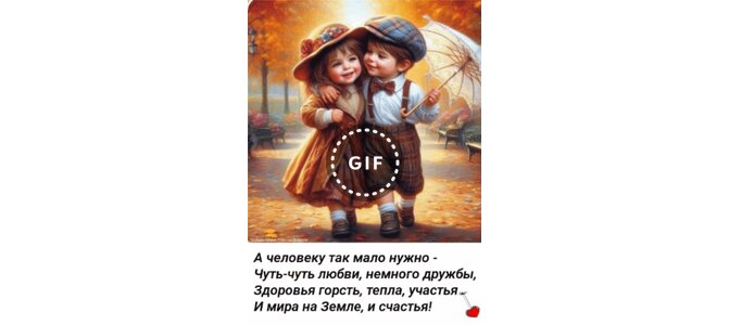 Анимированная открытка "А человеку так мало нужно - чуть-чуть любви, немного дружбы, здоровья горсть, тепла, участья и мира"