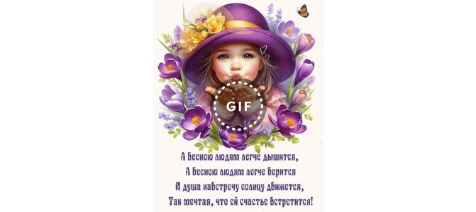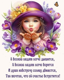 Открытка "А весною людям легче дышится, а весною людям легче верится и душа навстречу солнцу движется,"
