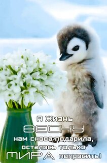 Теги:времена года, весна, начало весны, пожелание, пингвинчик, букет подснежников