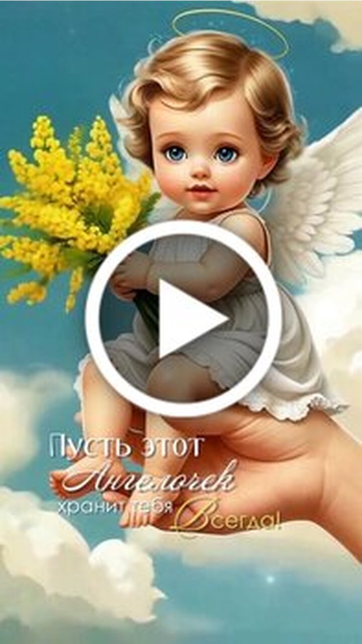 Красивое и светлое видео с нежным образом маленького ангела. На видео изображен очаровательный младенец с крыльями и нимбом, который сидит на ладони среди облаков и держит в руках пышный букет желтых цветов мимозы. Атмосфера видео наполнена спокойствием, чистотой и божественным светом. Сюжет сопровождается вдохновляющими словами пожеланий о том, чтобы этот ангел всегда оберегал вас и чтобы каждый ваш день был наполнен ароматом счастья. Идеально подходит для отправки близким в качестве доброго пожелания или духовной поддержки.