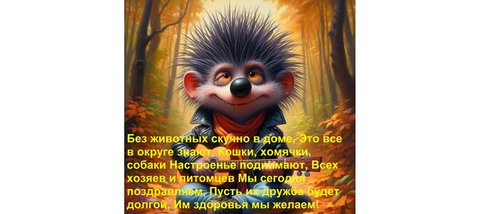 Теги:без животных скучно в доме, это все в округе знают, кошки, хомячки, собаки настроенье поднимают, всех хозяев и питомцев мы сегодня поздравляем, пусть их дружба будет долгой, им здоровья мы желаем