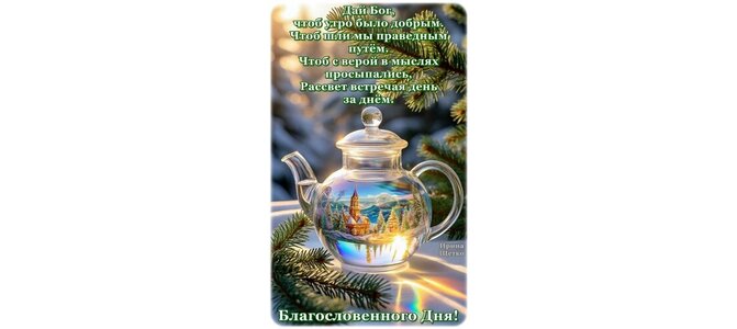 Дай Бог, чтоб утро было добрым, чтоб шли мы праведным путём. Чтоб с верой в мыслях просыпались, рассвет встречая день за днём. Благословенного дня!