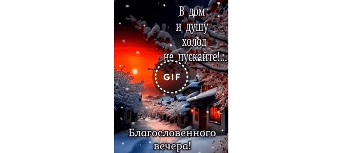 Анимированная открытка "Благословенного вечера! В дом и душу холод не пускайте!.."