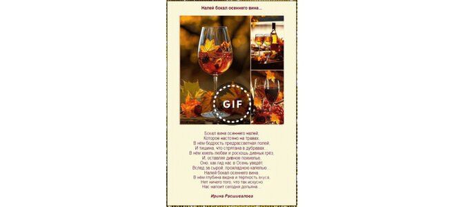 Анимированная открытка "Бокал вина осеннего налей, Которое настояно на травах, В нём бодрость предрассветная полей,"