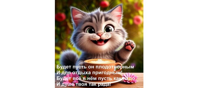 Открытка "Будет пусть он плодотворным И для отдыха пригодным! Будет всё в нём пусть как надо И душа твоя так р"