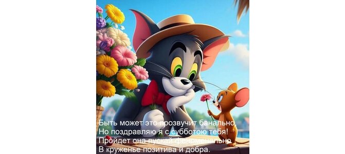 Быть может это прозвучит банально. Но поздравляю я с субботою тебя! Пройдет она пускай феноменально В круженье позитива и добра.