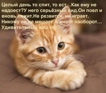 Открытка "Целый день то спит, то ест… Как ему не надоест? У него серьёзный вид. Он поел и вновь лежит. Не резв"