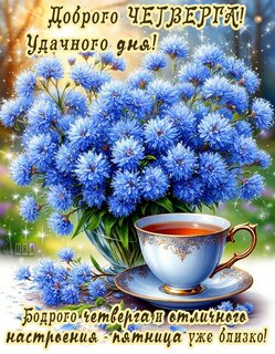 Теги:четверг, дни недели, добрый день, чашка чая, цветы, бодрого четверга, отличного настроения, удачного дня, красивая картинка