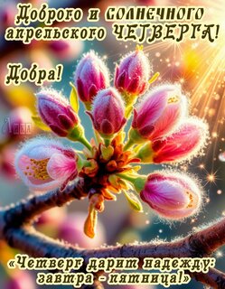 Теги:четверг апреля, апрель, четверг, весна, тепло, солнечно, красивая картинка, добра, солнечного дня, добрый день, четверг дарит надежду-завтра пятница