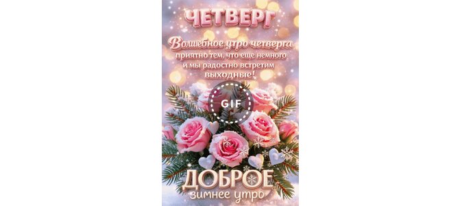 Анимированная открытка "Четверг. Доброе зимнее утро. Волшебное утро четверга приятно тем, что ещё немного и мы радостно"