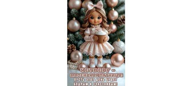 Открытка "ЧЕТВЕРГ - МАЛЕНЬКАЯ ПЯТНИЦА! ПУСТЬ ЭТОТ ДЕНЬ БУДЕТ БОДРЫМ И СЧАСТЛИВЫМ!"