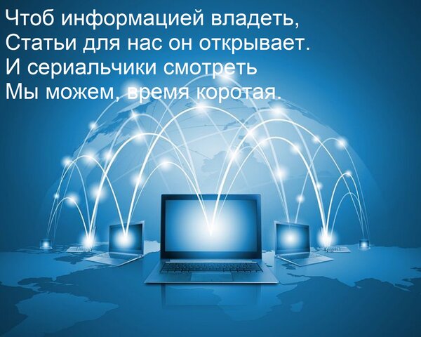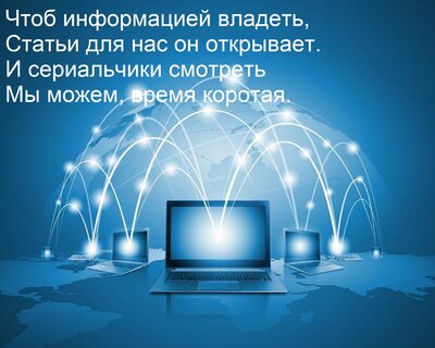 Открытка "Чтоб информацией владеть, статьи для нас он открывает. И сериальчики смотреть мы можем, время коротая."