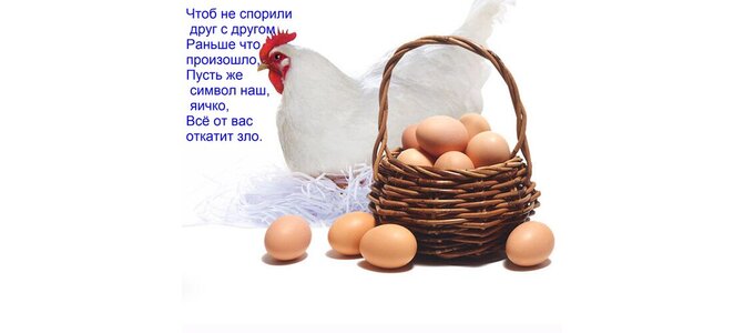 Теги:чтоб не спорили друг с другом раньше что произошло, пусть же символ наш, яичко, всё от вас откатит зло