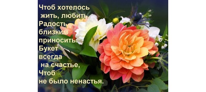 Теги:чтоб хотелось жить, любить, радость близким приносить букет всегда на счастье, чтоб не было ненастья, пожелания добра и счастья