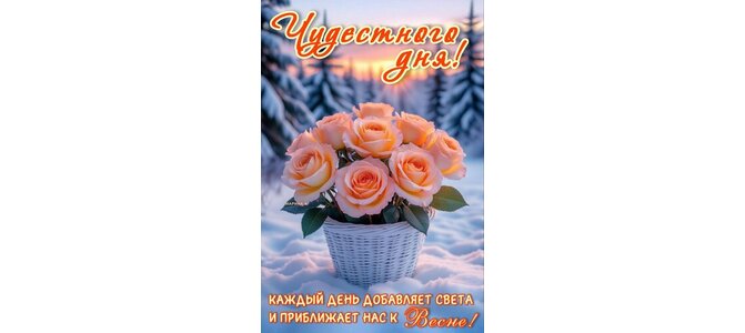Открытка "ЧУДЕСНОГО ДНЯ! КАЖДЫЙ ДЕНЬ ДОБАВЛЯЕТ СВЕТА И ПРИБЛИЖАЕТ НАС К ВЕСНЕ!"
