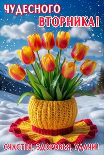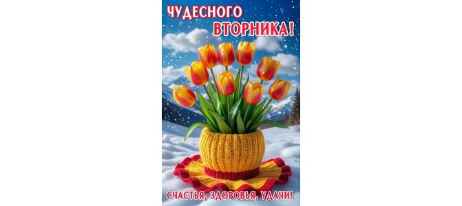 Открытка "ЧУДЕСНОГО ВТОРНИКА! СЧАСТЬЯ, ЗДОРОВЬЯ, УДАЧИ!"