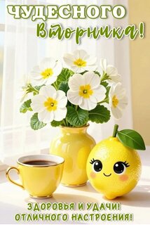 Открытка "ЧУДЕСНОГО ВТОРНИКА! ЗДОРОВЬЯ И УДАЧИ! ОТЛИЧНОГО НАСТРОЕНИЯ!"