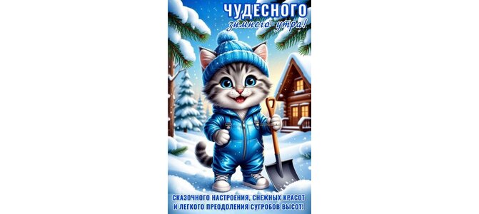 Открытка "ЧУДЕСНОГО ЗИМНЕГО УТРА! СКАЗОЧНОГО НАСТРОЕНИЯ, СНЕЖНЫХ КРАСОТ И ЛЕГКОГО ПРЕОДОЛЕНИЯ СУГРОБОВ ВЫСОТ!"