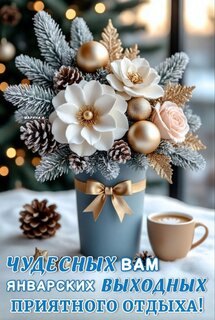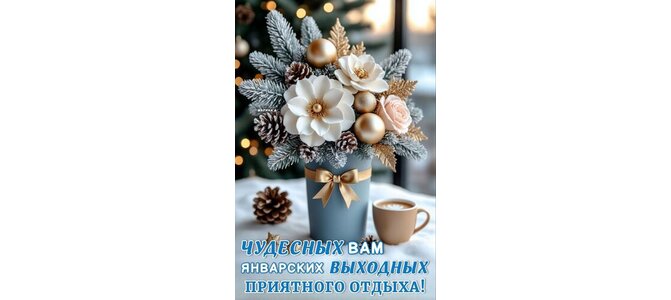 Открытка "ЧУДЕСНЫХ ВАМ ЯНВАРСКИХ ВЫХОДНЫХ. ПРИЯТНОГО ОТДЫХА!"