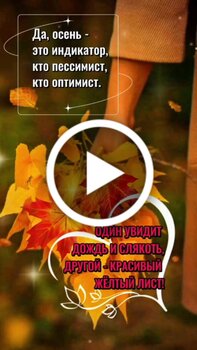 Видеооткрытка "Да, осень - это индикатор, кто пессимист, кто оптимист. Один увидит дождь и слякоть, другой - красивый желтый лист."