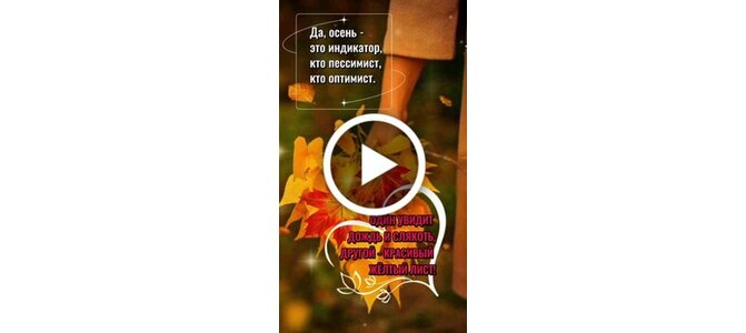 Видеооткрытка "Да, осень - это индикатор, кто пессимист, кто оптимист. Один увидит дождь и слякоть, другой - красивый желтый лист."