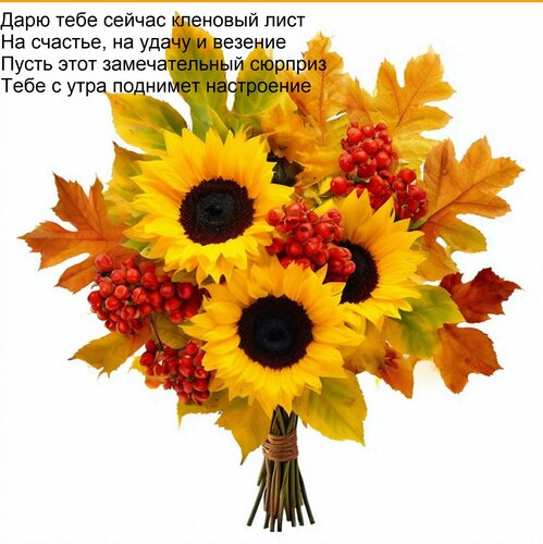 Дарю тебе сейчас кленовый лист на счастье, на удачу и везение. Пусть этот замечательный сюрприз тебе с утра поднимет настроение.