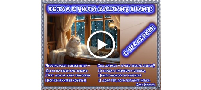 Теги:1 декабря, декабрь, начало зимы, с декабрем, тепла и уюта вашему дому, тепла, уюта, хорошего дня, ольга марк, анна иванова, кошка, кошка и котята, прекрасного настроения