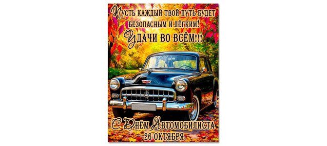 Пусть каждый твой путь будет безопасным и легким! Удачи во всем! С днем автомобилиста. 26 октября.