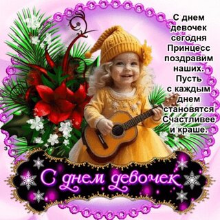 С днем девочек сегодня принцесс поздравим наших. Пусть с каждым днем становятся счастливее и краше. С днем девочек.