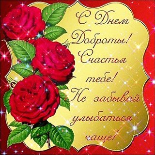 С днем доброты! Счастья тебе! Не забывай улыбаться чаще!