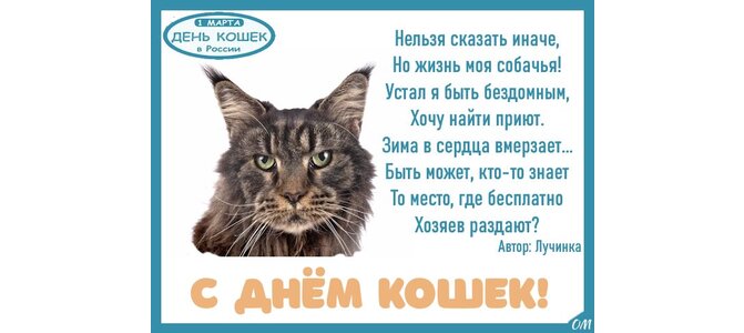 Теги:1 марта, без кота и жизнь не та, весна, весна пришла, день кошек, день кошек в россии, кот, кот и кошка, кот танцует, коты прилетели, кошка - друг, март, ольга марк