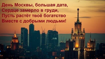 Открытка "День Москвы, большая дата, Сердце замерло в груди, Пусть растёт твоё богатство Вместе с добрыми людь"