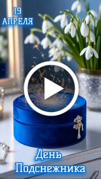 Красивое праздничное видео, посвященное Дню подснежника, который отмечается 19 апреля. В центре композиции находится изысканная синяя бархатная шкатулка, наполненная нежными белыми цветами подснежников. Видео наполнено волшебной атмосферой благодаря магическим искрам, мерцающим огонькам и мягкому свету, создающим ощущение сказки. Композиция дополнена букетом подснежников на заднем плане, что подчеркивает весеннее настроение и красоту пробуждающейся природы. Это эстетичное видео идеально подходит для поздравлений и создания праздничного настроения.