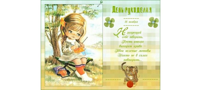День рукоделия 16 ноября. Не запрещай себе творить, пусть иногда выходит криво. Твои нелепые мотивы никто не в силах повторить...