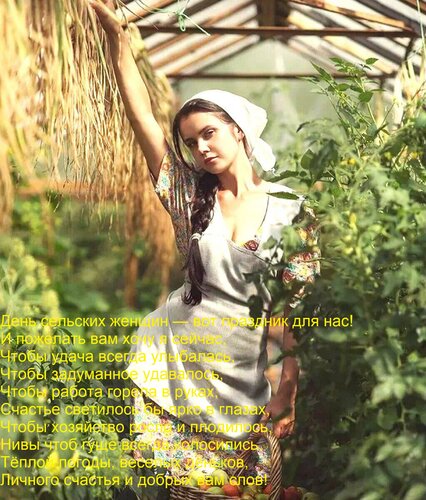Открытка "День сельских женщин — вот праздник для нас! И пожелать вам хочу я сейчас, Чтобы удача всегда улыбал"