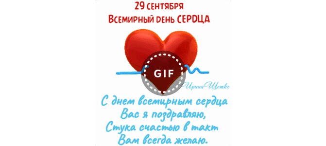 29 сентября Всемирный день сердца. С днем всемирным сердца вас я поздравляю, стука счастью в такт Вам всегда желаю.