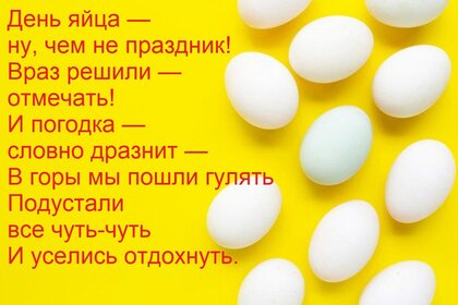 Открытка "День яйца — ну, чем не праздник! Враз решили — отмечать! И погодка — словно дразнит..."