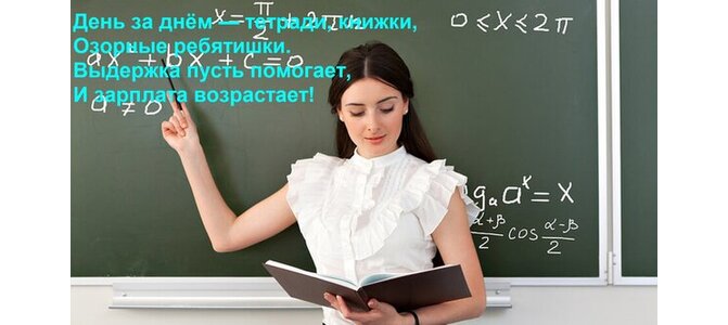 Открытка "День за днём — тетради, книжки, Озорные ребятишки. Выдержка пусть помогает, И зарплата возрастает!"