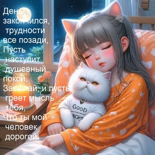 Теги:день закончился, трудности все позади, пусть наступит душевный покой засыпай, и пусть греет мысль тебя, что ты мой человек дорогой