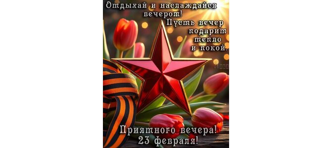 Отдыхай и наслаждайся вечером! Пусть вечер подарит тепло и покой. Приятного вечера! 23 февраля!