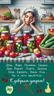 Открытка "День жара поливка грядки дом плита закатки ночь кровать упало тело вот и лето пролетелоело"
