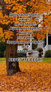 Деньги потерял - ничего не потерял. Время потерял - многое потерял. Здоровье потерял - всё потерял. Берегите себя!