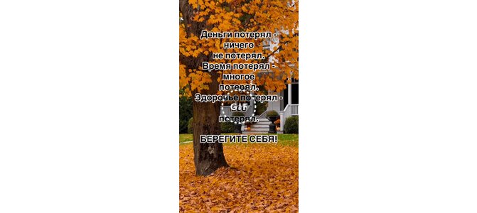 Анимированная открытка "Деньги потерял - ничего не потерял. Время потерял - многое потерял. Здоровье потерял - всё потерял."