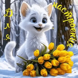 котик с тюльпанами