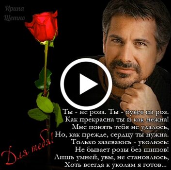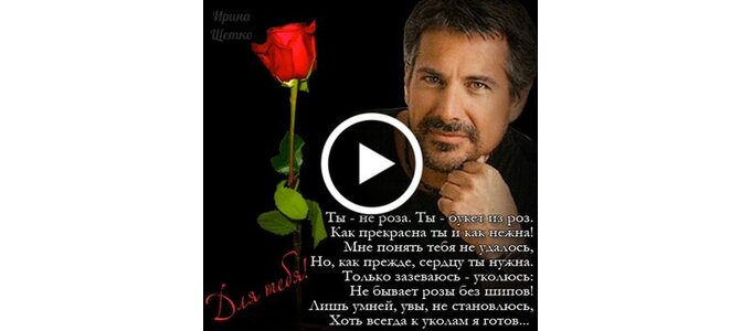 Ты - не роза. Ты - букет из роз. Как прекрасна ты и как нежна! Мне понять тебя не удалось, но, как прежде, сердцу ты нужна. Только зазеваюсь - уколюсь: не бывает розы без шипов! Лишь умней, увы, не становлюсь, хоть всегда к уколам я готов... Для тебя!