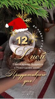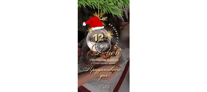 Анимированная открытка "До Нового года 12 дней. Самое время подумать о Новогоднем меню... Продуктивного дня!"