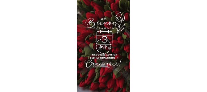 Анимированная открытка "До Весны осталось: 3 дня. Уже очень хочется весны, тюльпанов и счастья!"