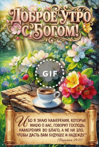 Анимированная открытка "Добро утро с Богом! Ибо я знаю намерения, которые имею о вас, говорит Господь, намерения во благо,"