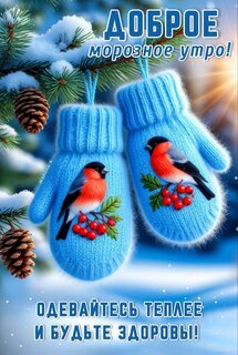Теги:зима, доброе утро, одевайтесь теплее, морозное утро, варежки, снегири
