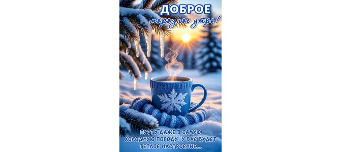 Открытка "ДОБРОЕ МОРОЗНОЕ УТРО! ПУСТЬ ДАЖЕ В САМУЮ ХОЛОДНУЮ ПОГОДУ, У ВАС БУДЕТ ТЕПЛОЕ НАСТРОЕНИЕ..."